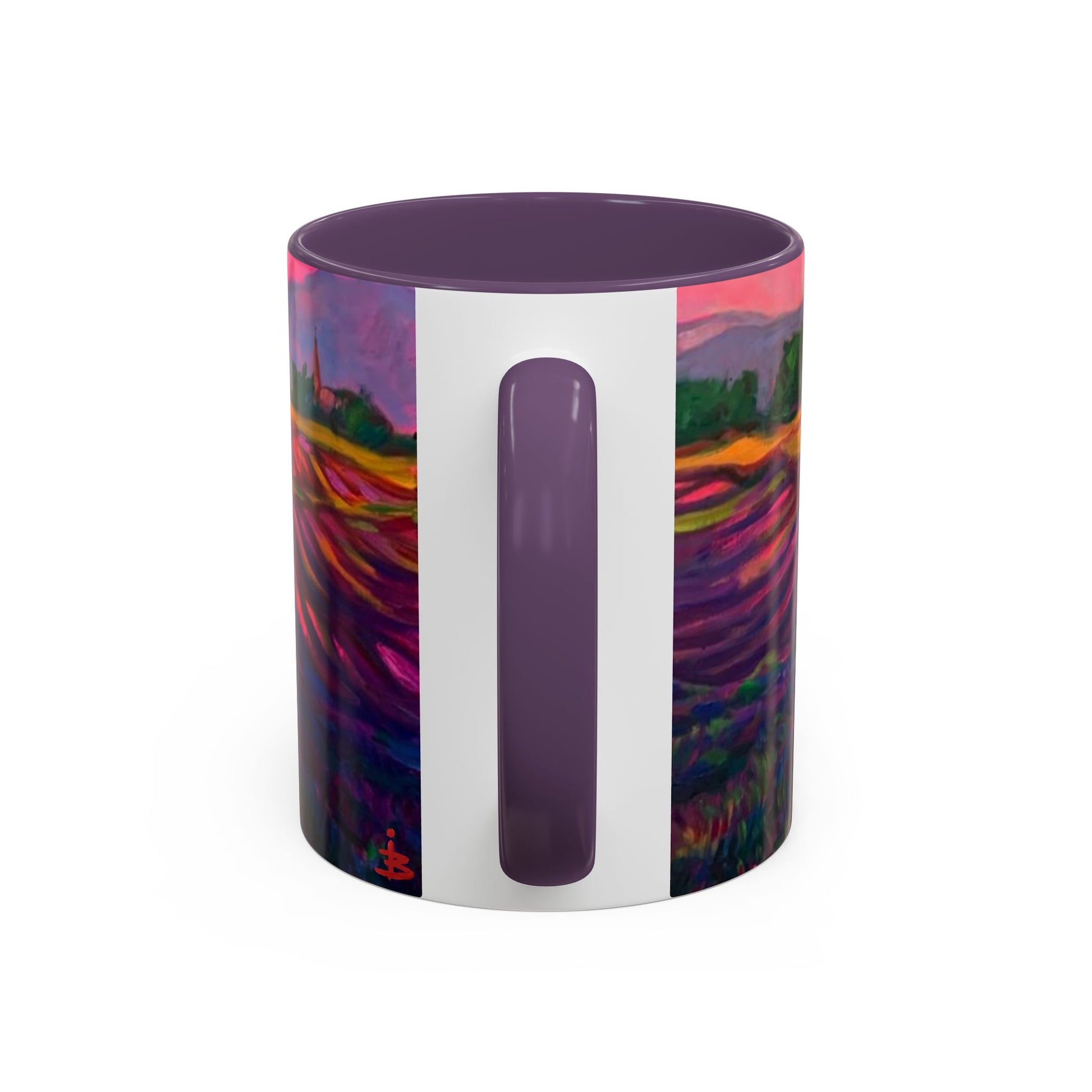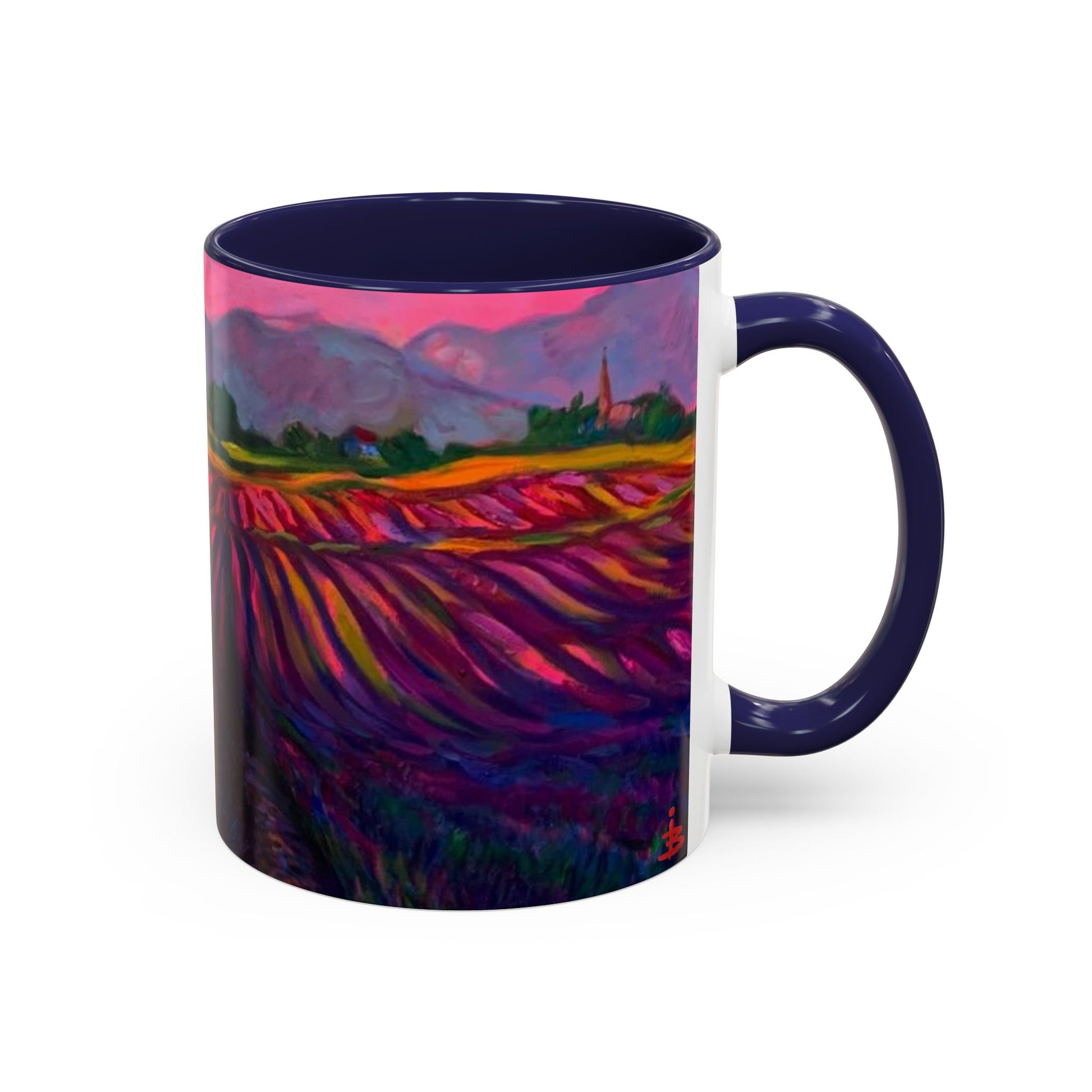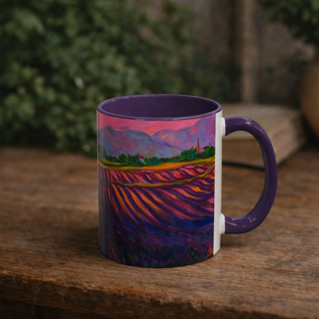Kaffeetasse mit Lavendelfeld-Motiv – Lebendige Sonnenuntergangslandschaft, 325 ml