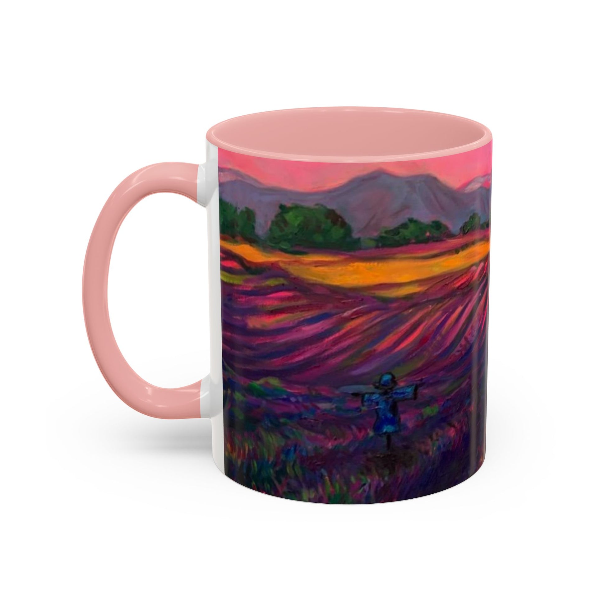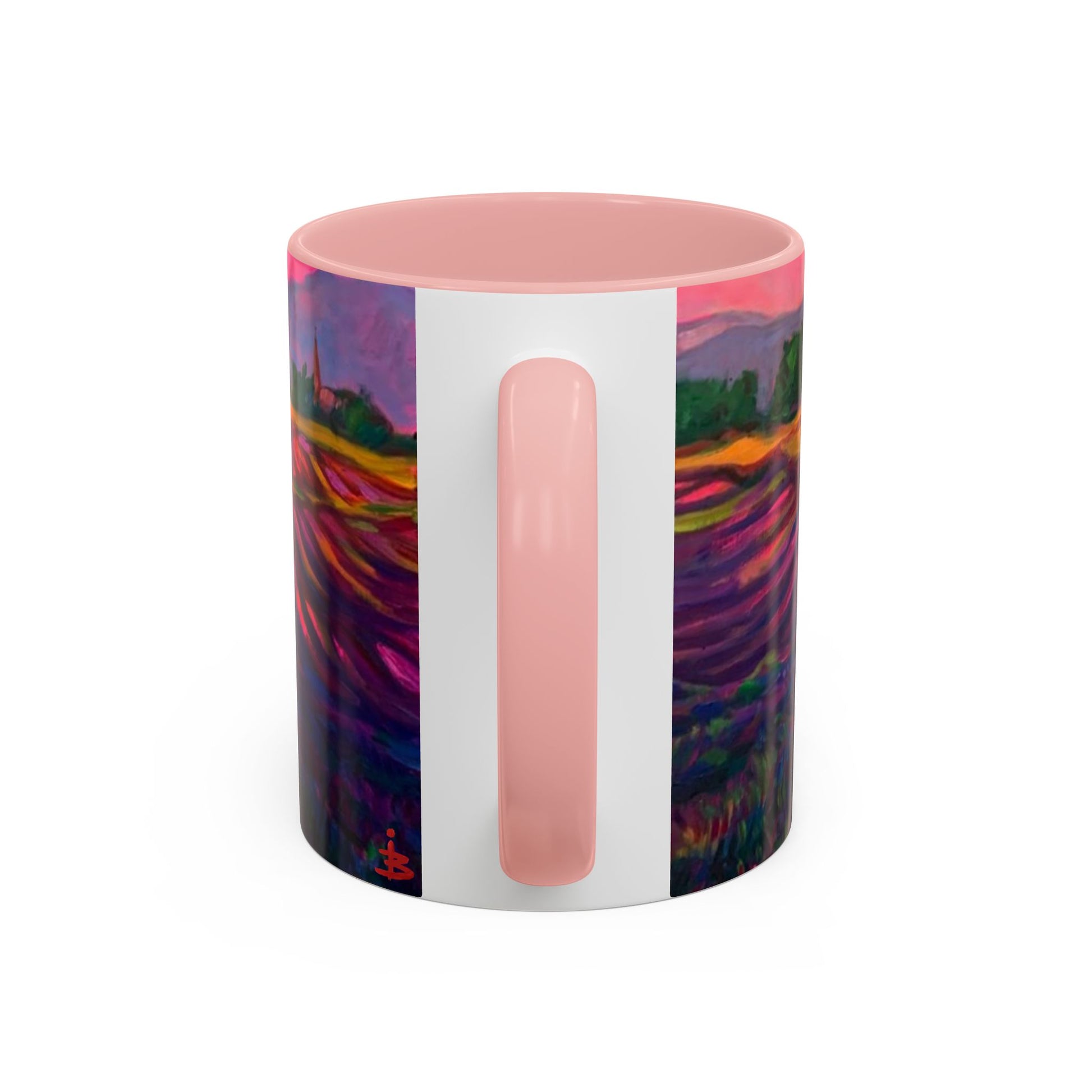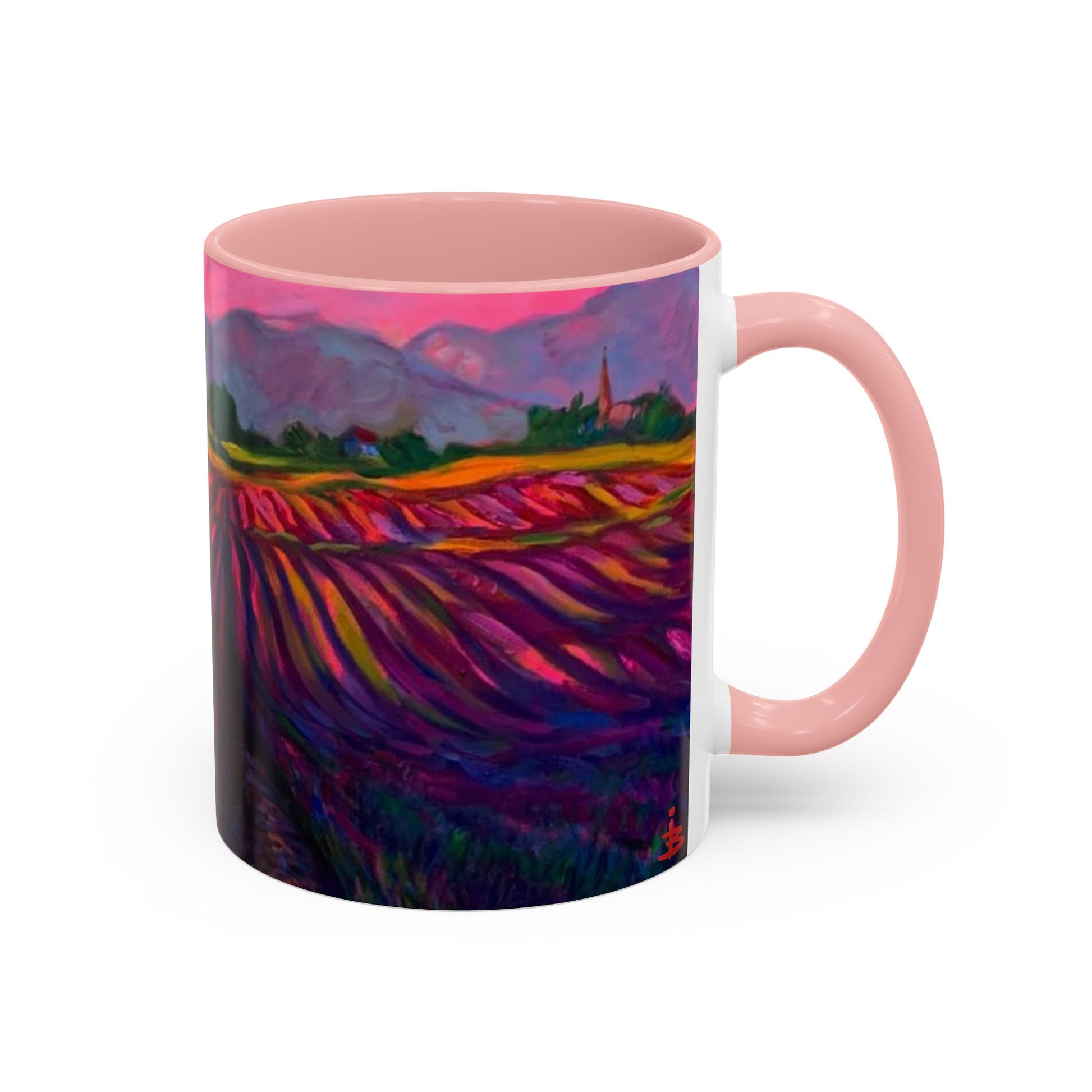 Kaffeetasse mit Lavendelfeld-Motiv – Lebendige Sonnenuntergangslandschaft, 325 ml