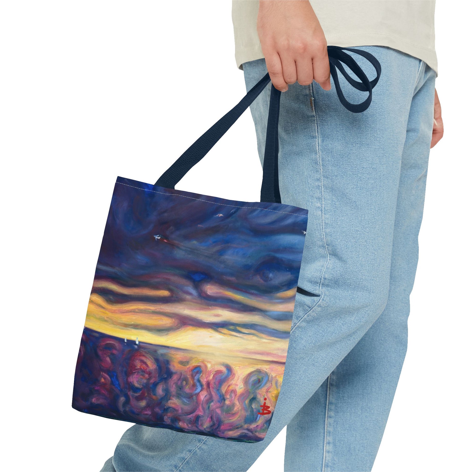 Tragetasche „Sonnenuntergangs-Traumlandschaft“ – Abstrakter Nachthimmel-Allover-Print
