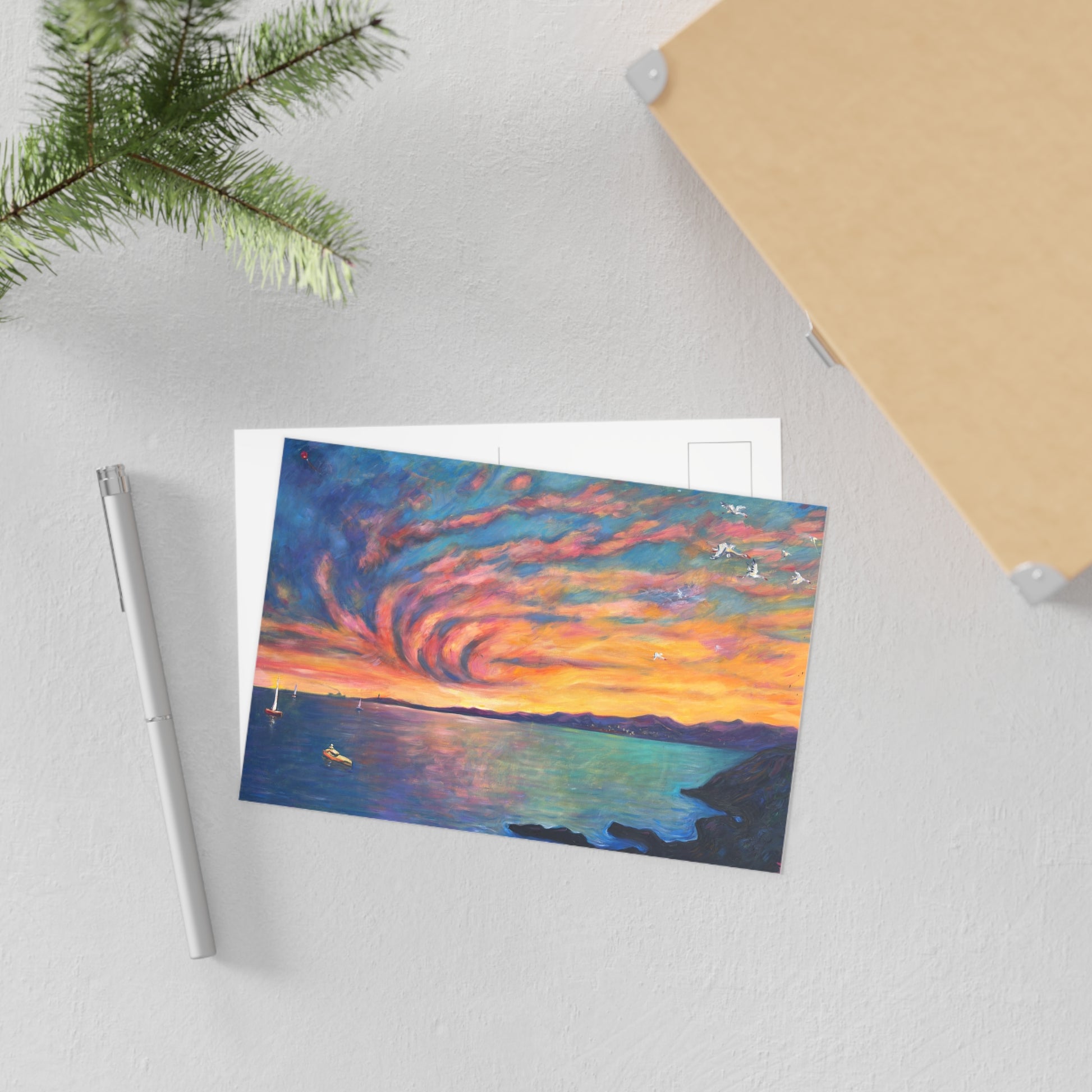 Sunset Swirl Fine Art Postcard — Seaside Landscape Greeting Card