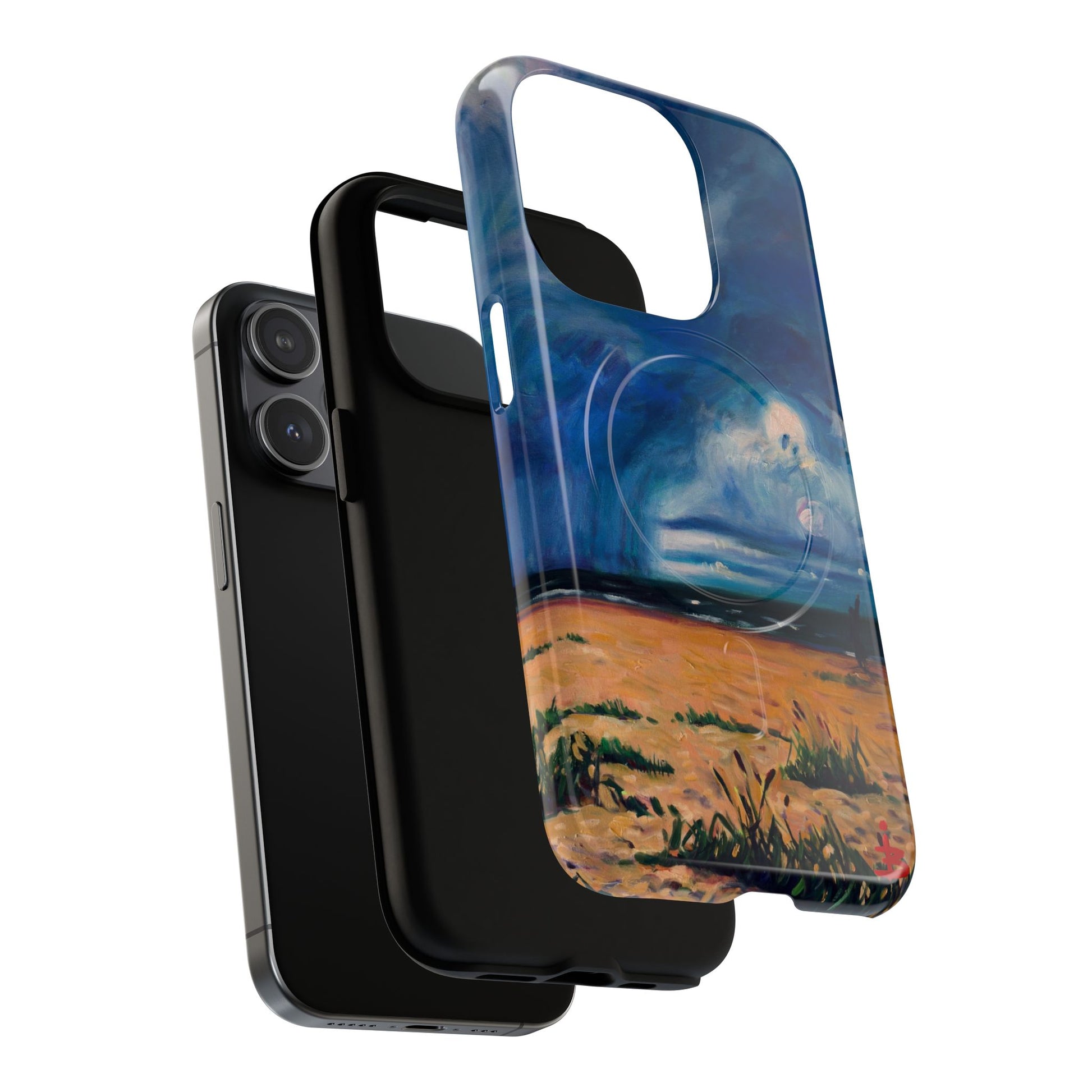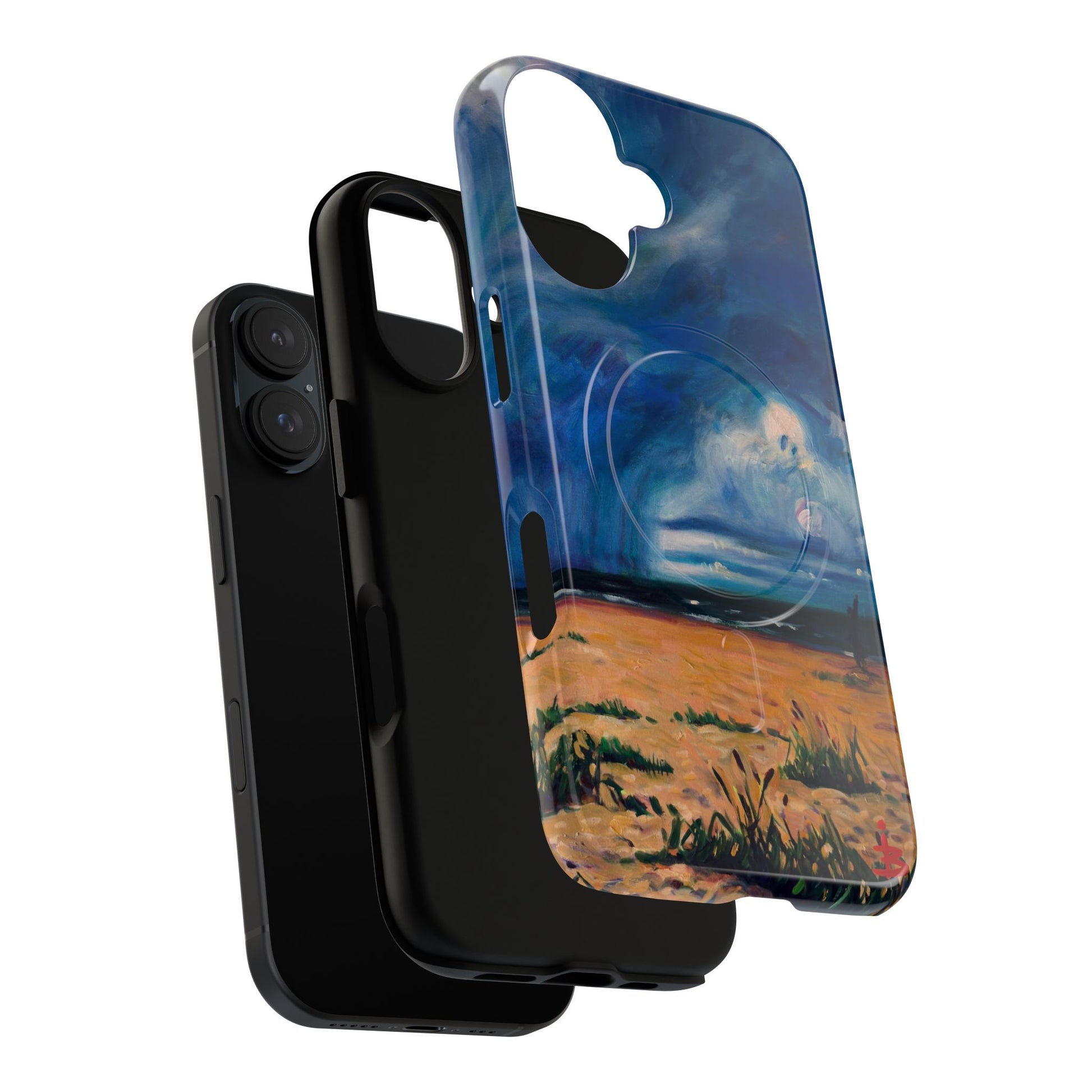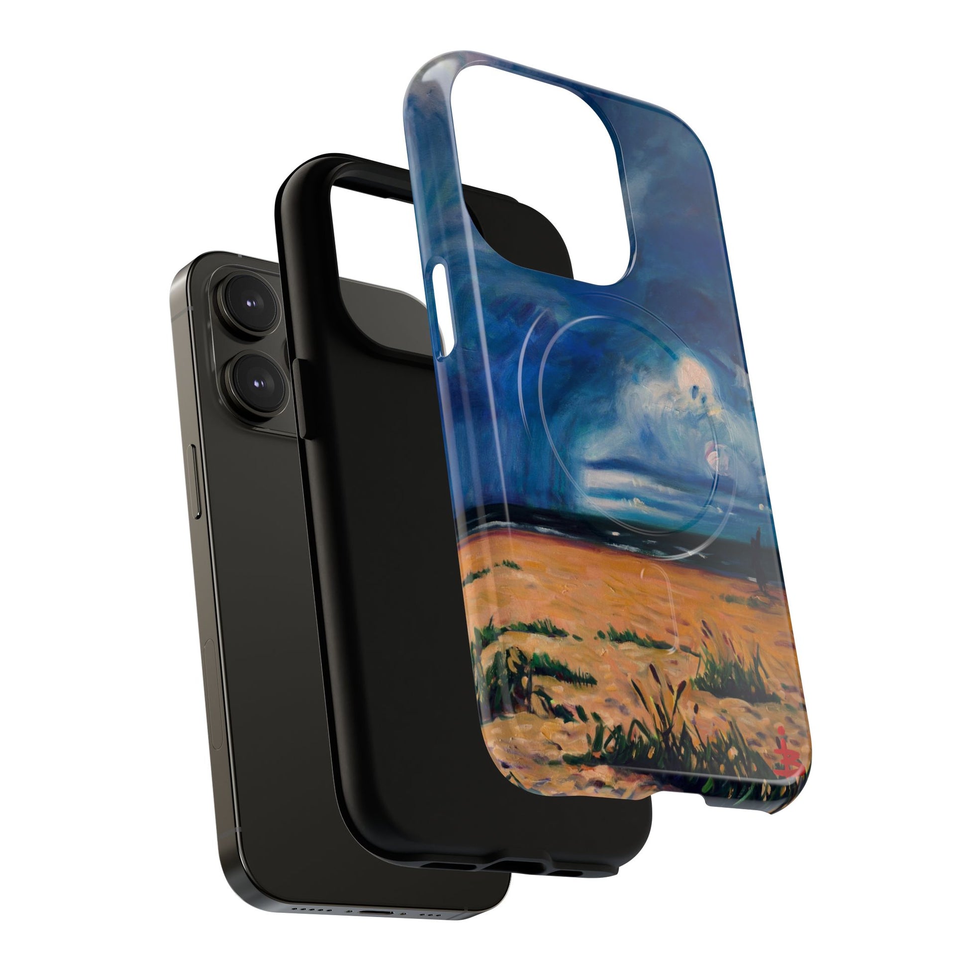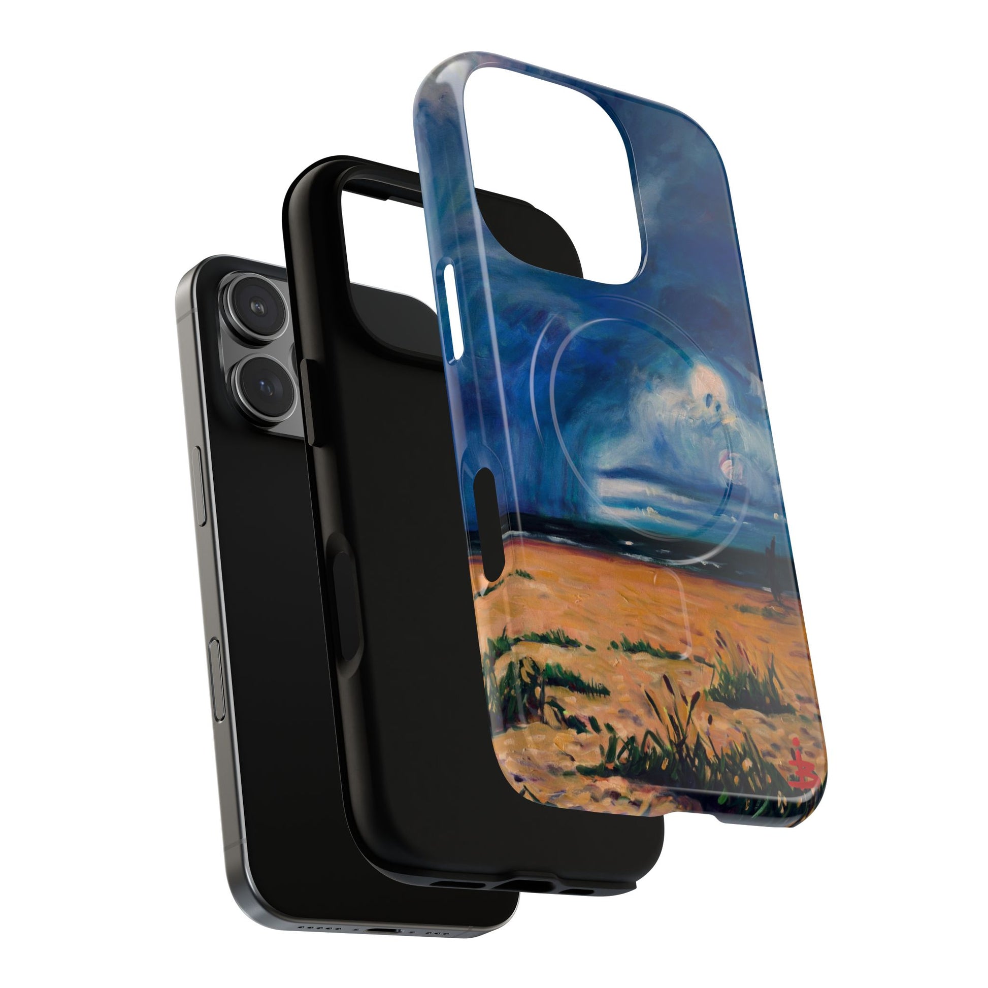 Этот тонкий двухслойный чехол для телефона окутывает ваш iPhone атмосферной картиной на морскую тематику — глубокое темно-синее небо, одинокая фигура на обдуваемых ветром дюнах и далекий горизонт, создающий ощущение уединенного момента у моря. Глянцевая или матовая поверхность сохраняет яркость изображения, а подкладка из ТПУ смягчает удары, в то время как поликарбонатный корпус устойчив к ежедневному износу. Благодаря магнитному модулю, совместимому с MagSafe, и точным вырезам, он сочетает в себе повседневную функциональность со спокойным, созерцательным стилем. Носите с собой небольшой пейзаж, который успокоит ваш день и напомнит о соленом воздухе, вечернем свете и терпении бескрайних просторов.