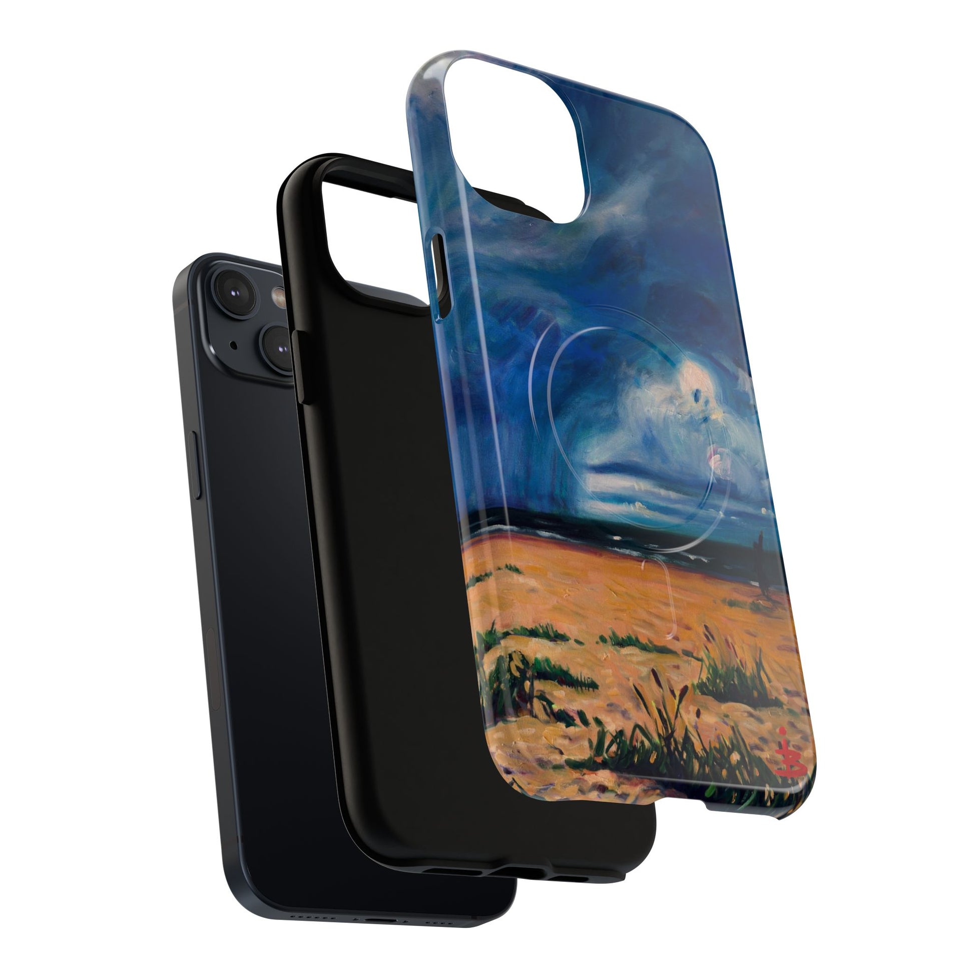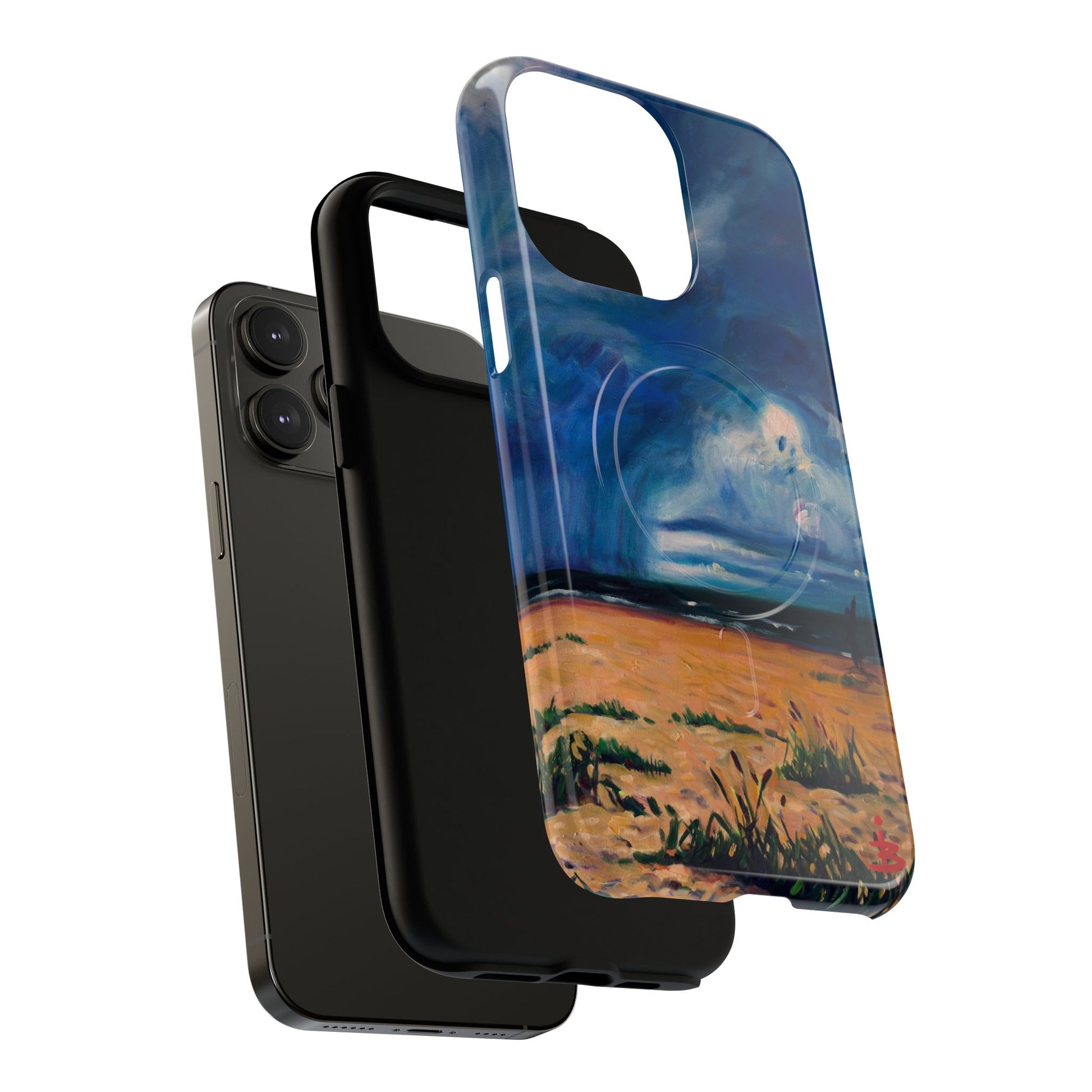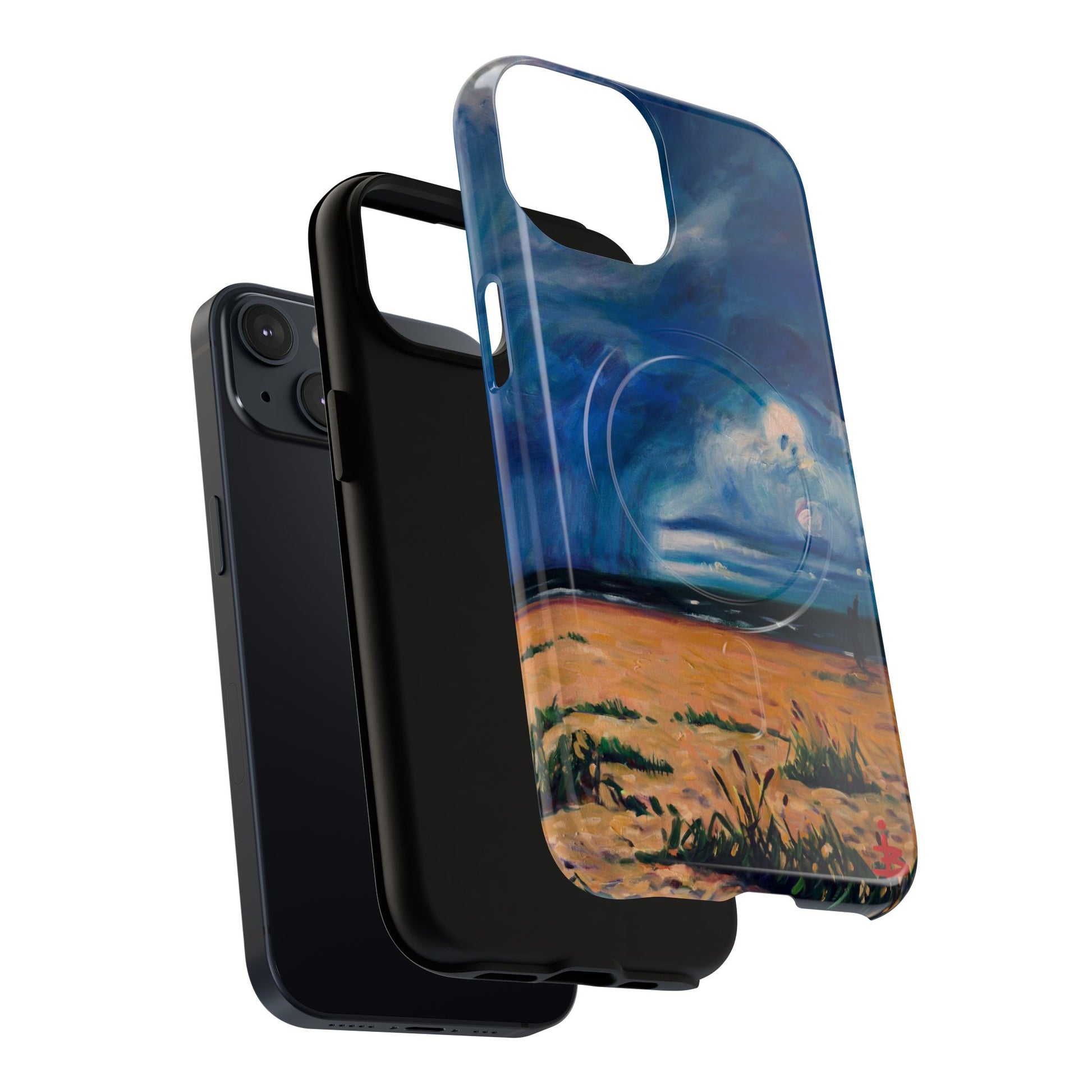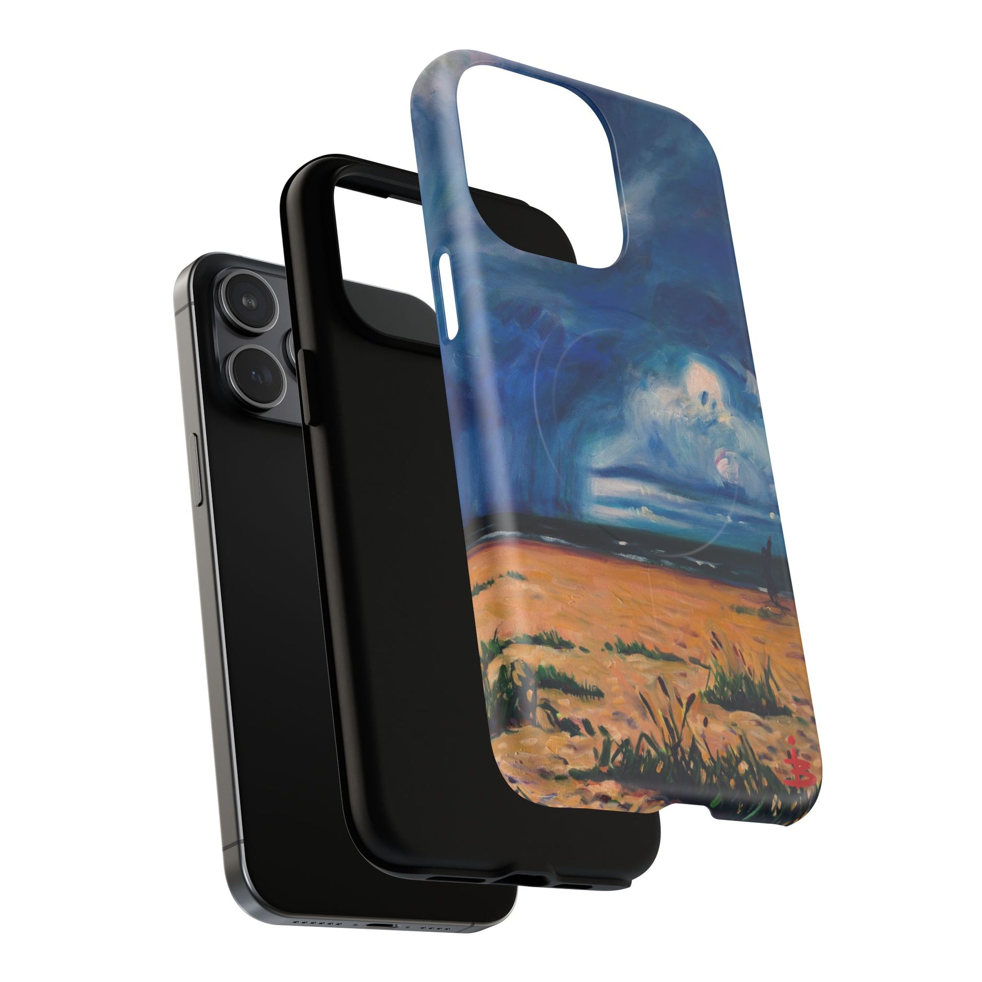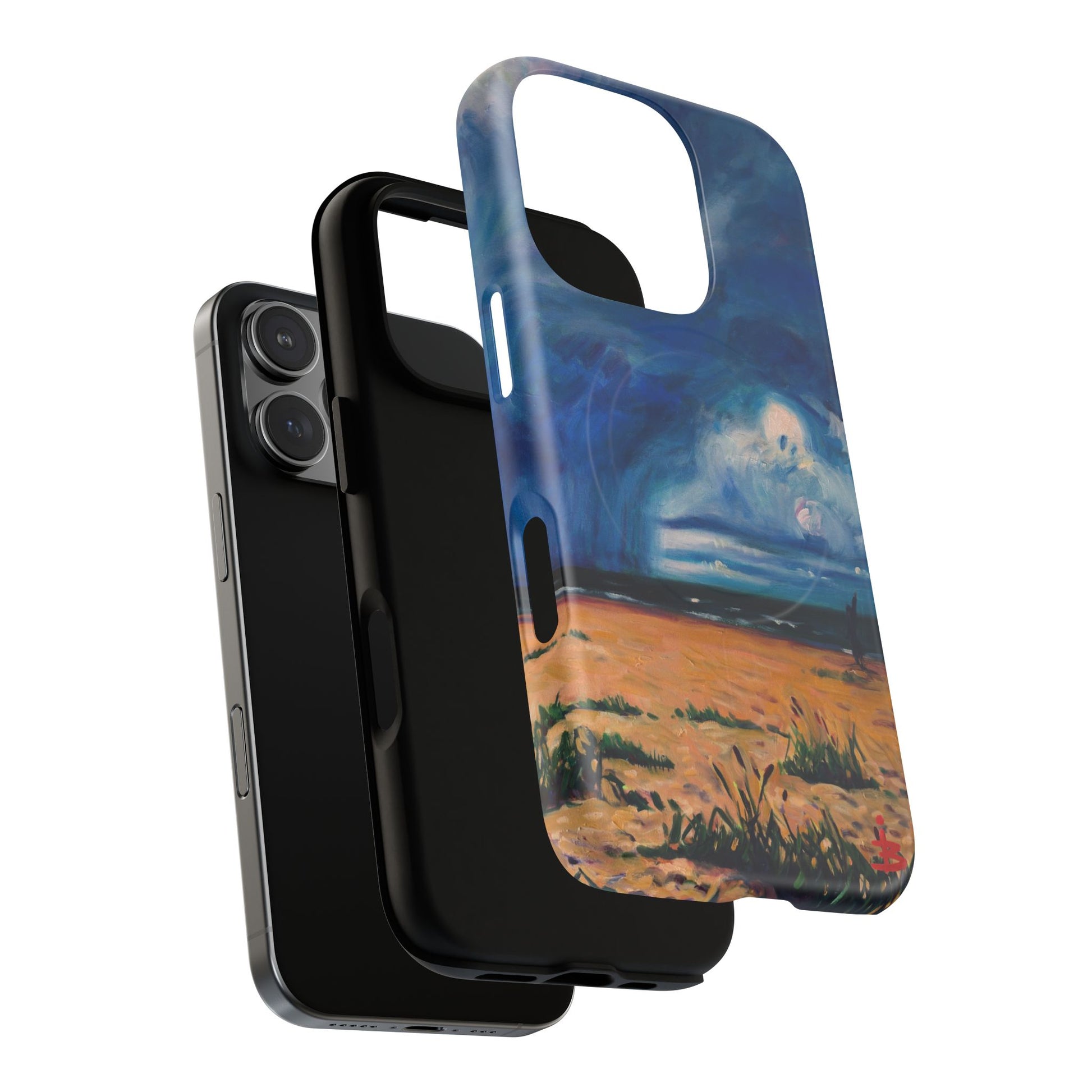Этот тонкий двухслойный чехол для телефона окутывает ваш iPhone атмосферной картиной на морскую тематику — глубокое темно-синее небо, одинокая фигура на обдуваемых ветром дюнах и далекий горизонт, создающий ощущение уединенного момента у моря. Глянцевая или матовая поверхность сохраняет яркость изображения, а подкладка из ТПУ смягчает удары, в то время как поликарбонатный корпус устойчив к ежедневному износу. Благодаря магнитному модулю, совместимому с MagSafe, и точным вырезам, он сочетает в себе повседневную функциональность со спокойным, созерцательным стилем. Носите с собой небольшой пейзаж, который успокоит ваш день и напомнит о соленом воздухе, вечернем свете и терпении бескрайних просторов.