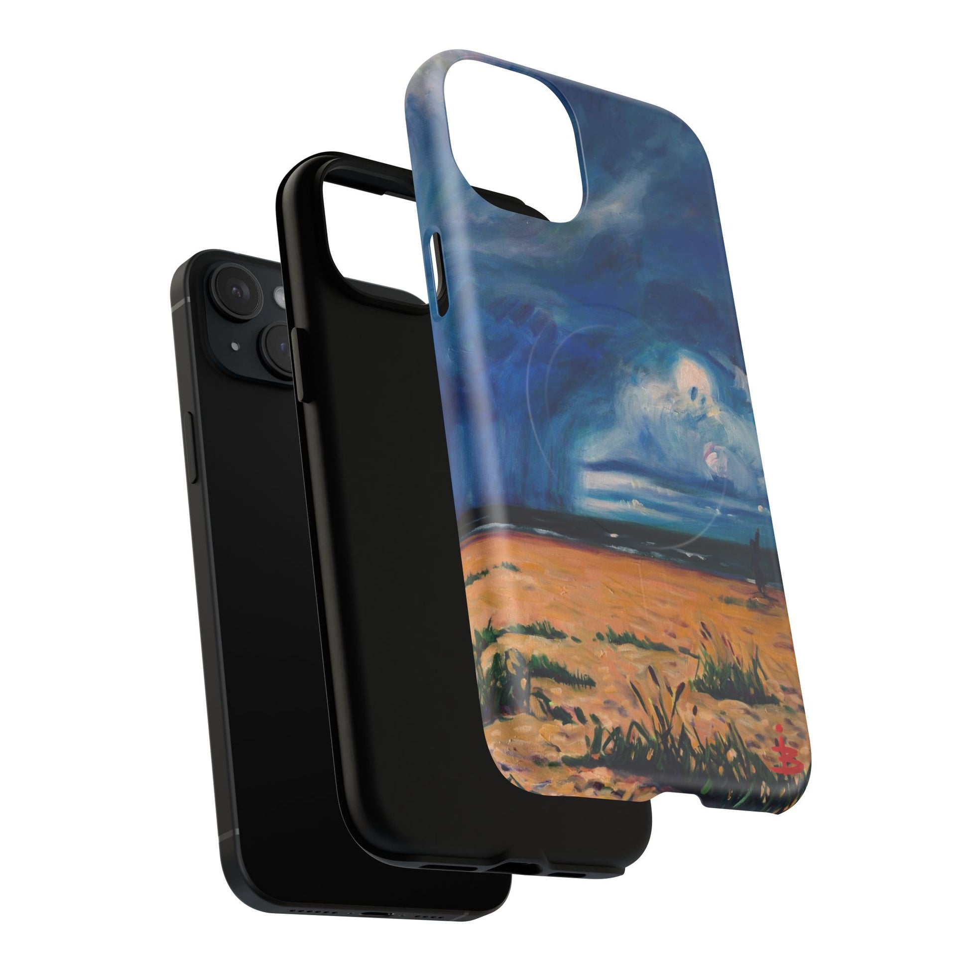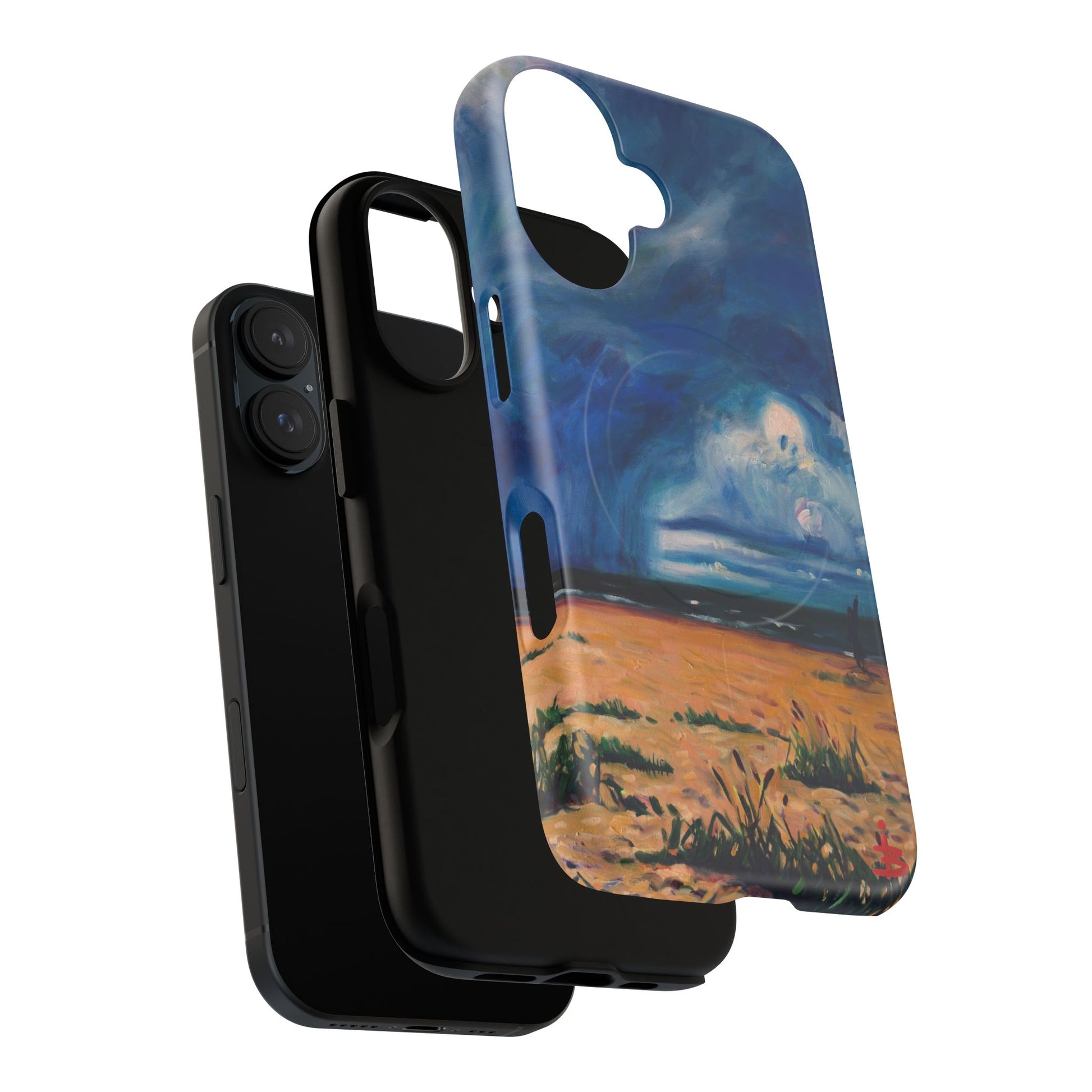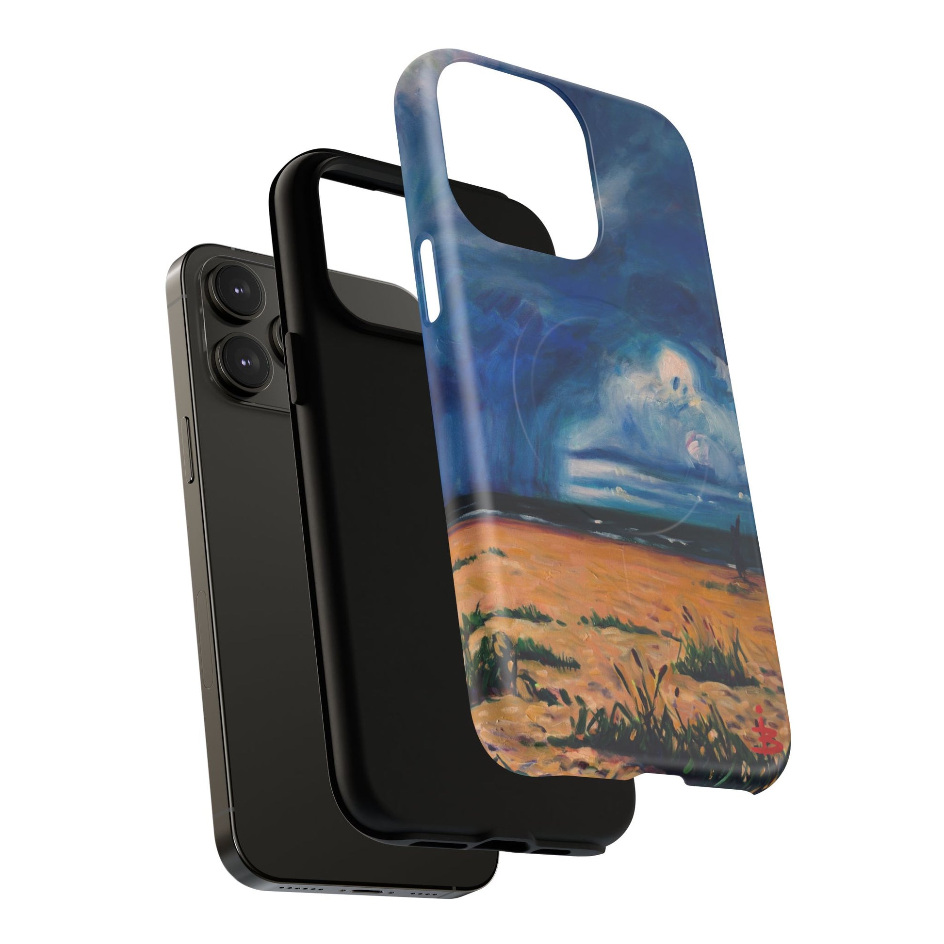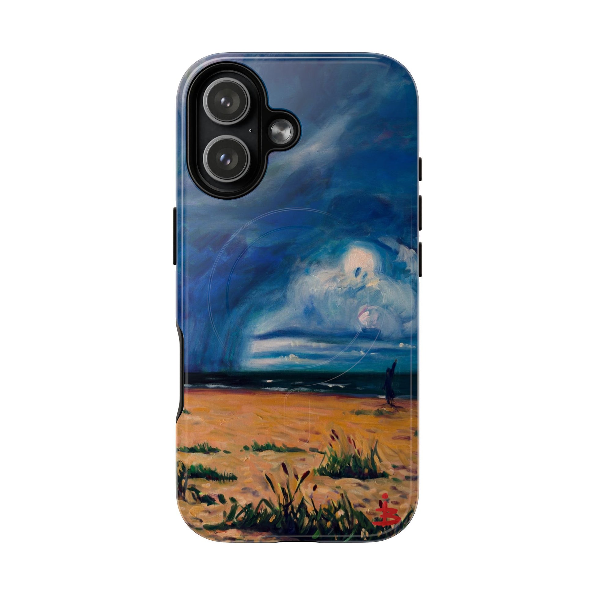 Этот тонкий двухслойный чехол для телефона окутывает ваш iPhone атмосферной картиной на морскую тематику — глубокое темно-синее небо, одинокая фигура на обдуваемых ветром дюнах и далекий горизонт, создающий ощущение уединенного момента у моря. Глянцевая или матовая поверхность сохраняет яркость изображения, а подкладка из ТПУ смягчает удары, в то время как поликарбонатный корпус устойчив к ежедневному износу. Благодаря магнитному модулю, совместимому с MagSafe, и точным вырезам, он сочетает в себе повседневную функциональность со спокойным, созерцательным стилем. Носите с собой небольшой пейзаж, который успокоит ваш день и напомнит о соленом воздухе, вечернем свете и терпении бескрайних просторов.