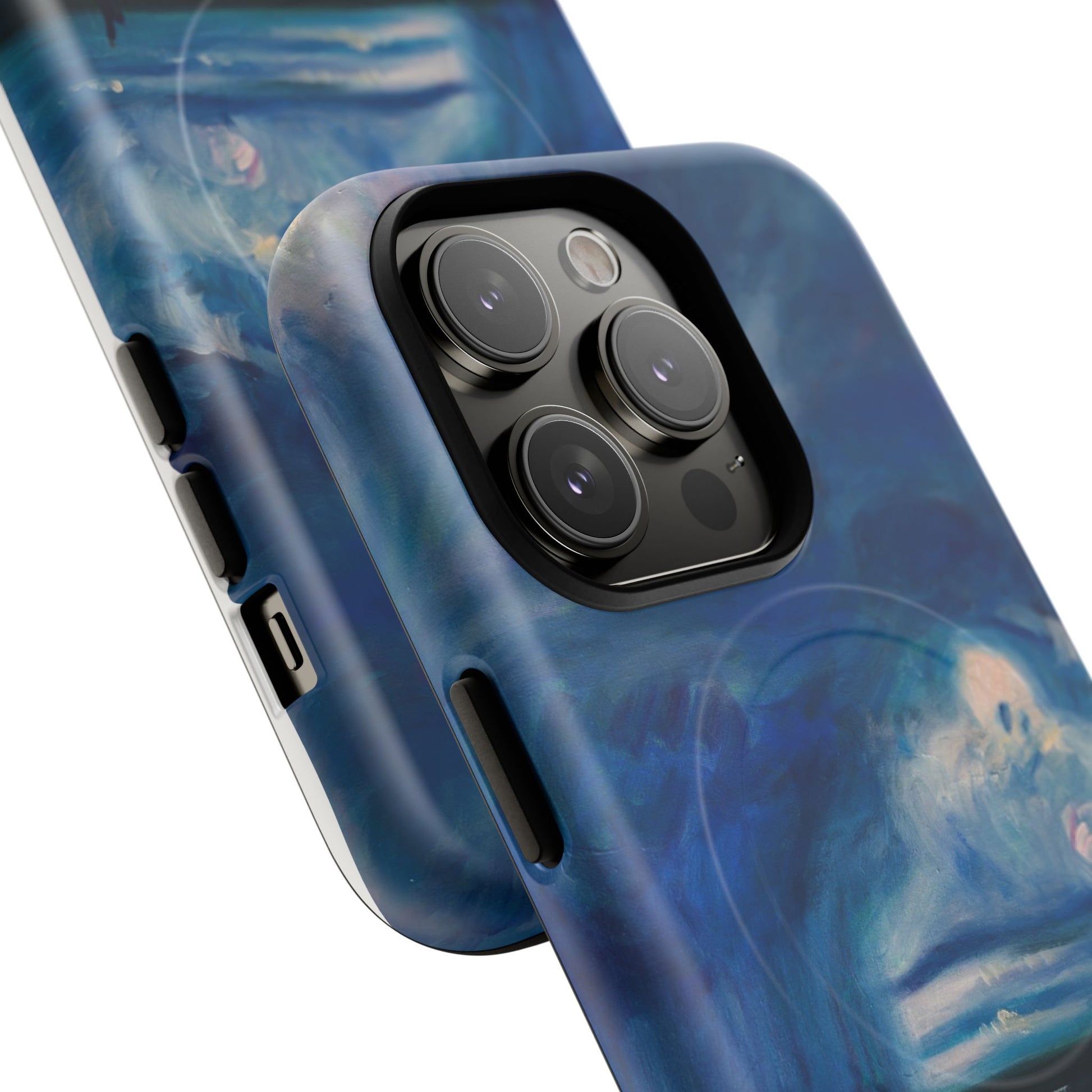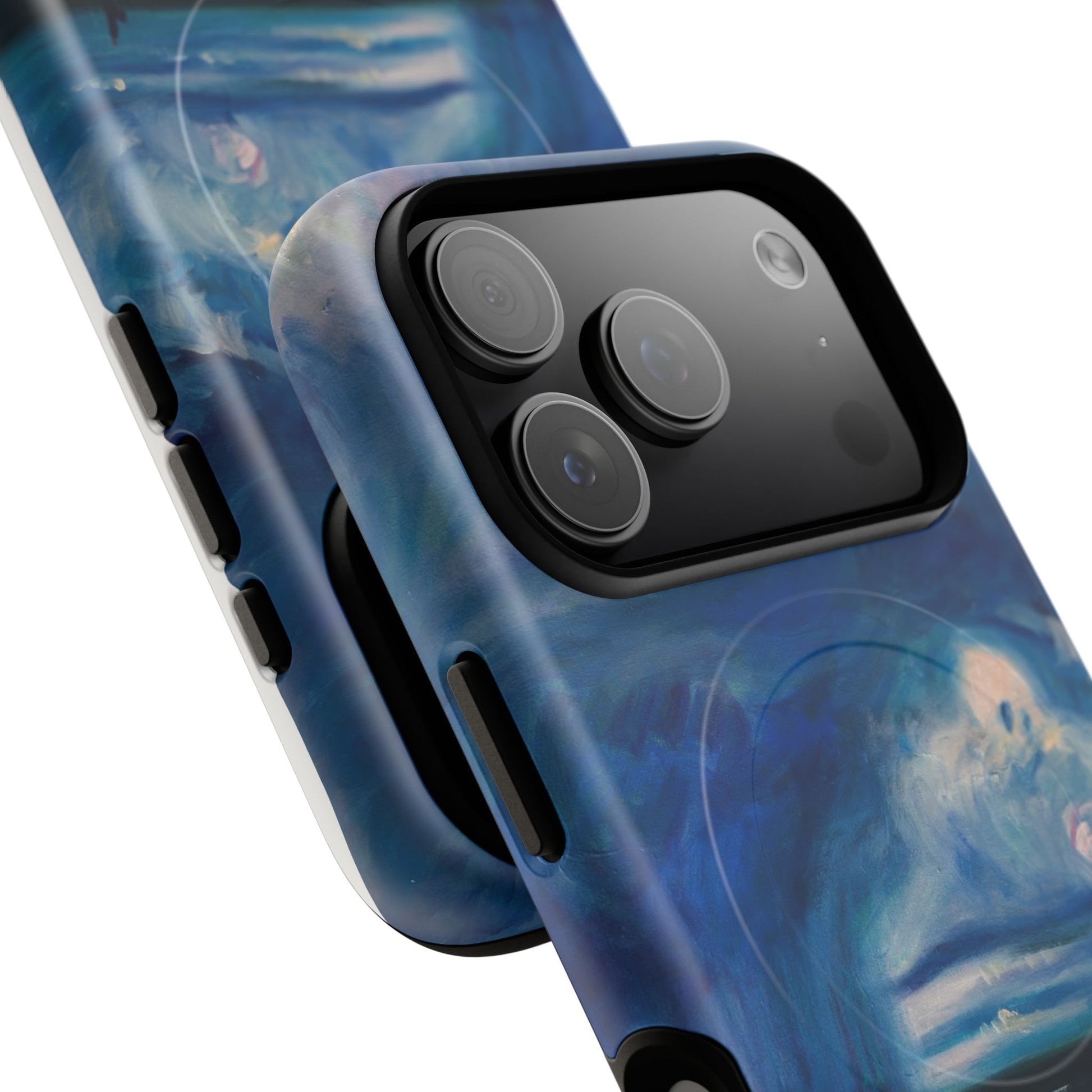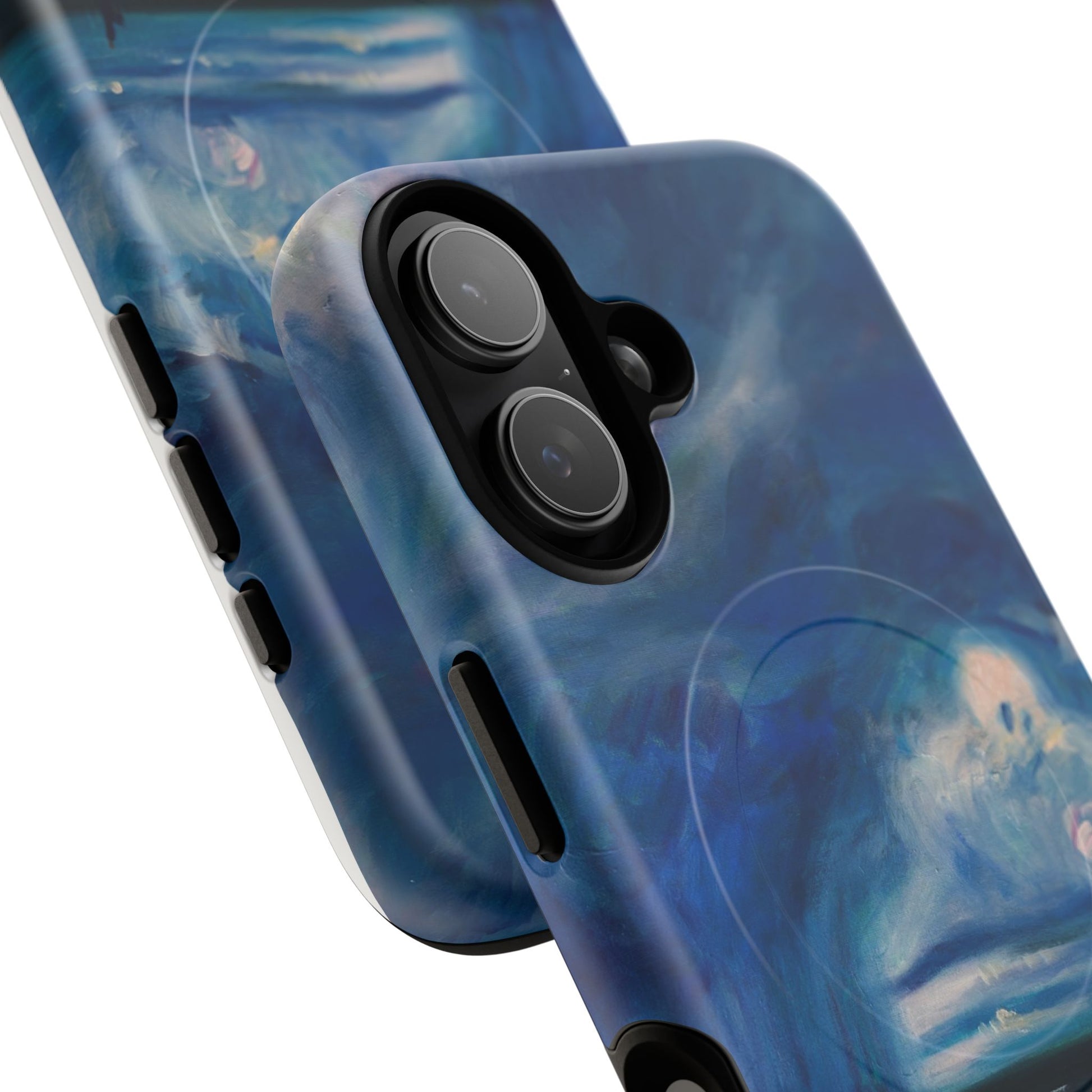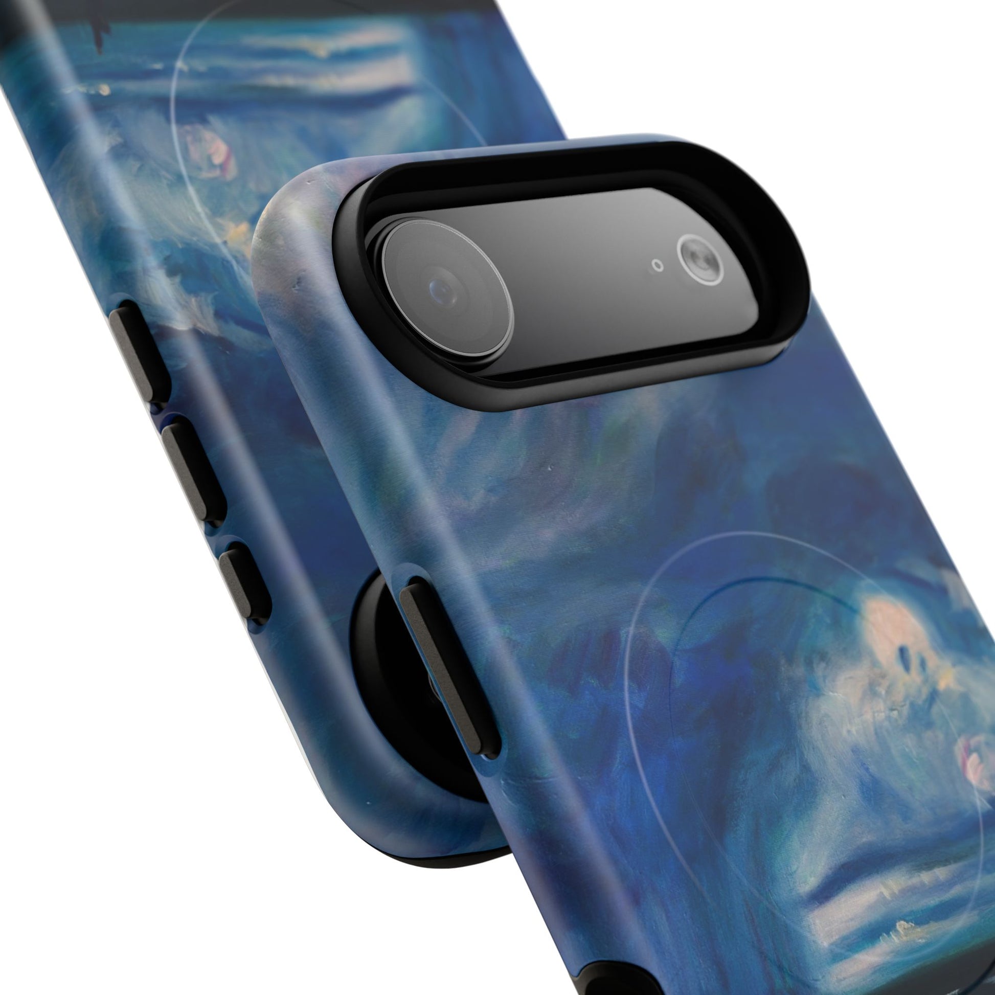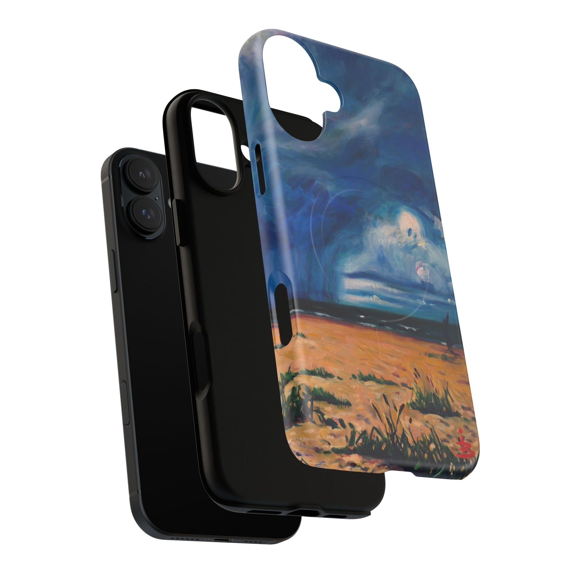 Этот тонкий двухслойный чехол для телефона окутывает ваш iPhone атмосферной картиной на морскую тематику — глубокое темно-синее небо, одинокая фигура на обдуваемых ветром дюнах и далекий горизонт, создающий ощущение уединенного момента у моря. Глянцевая или матовая поверхность сохраняет яркость изображения, а подкладка из ТПУ смягчает удары, в то время как поликарбонатный корпус устойчив к ежедневному износу. Благодаря магнитному модулю, совместимому с MagSafe, и точным вырезам, он сочетает в себе повседневную функциональность со спокойным, созерцательным стилем. Носите с собой небольшой пейзаж, который успокоит ваш день и напомнит о соленом воздухе, вечернем свете и терпении бескрайних просторов.