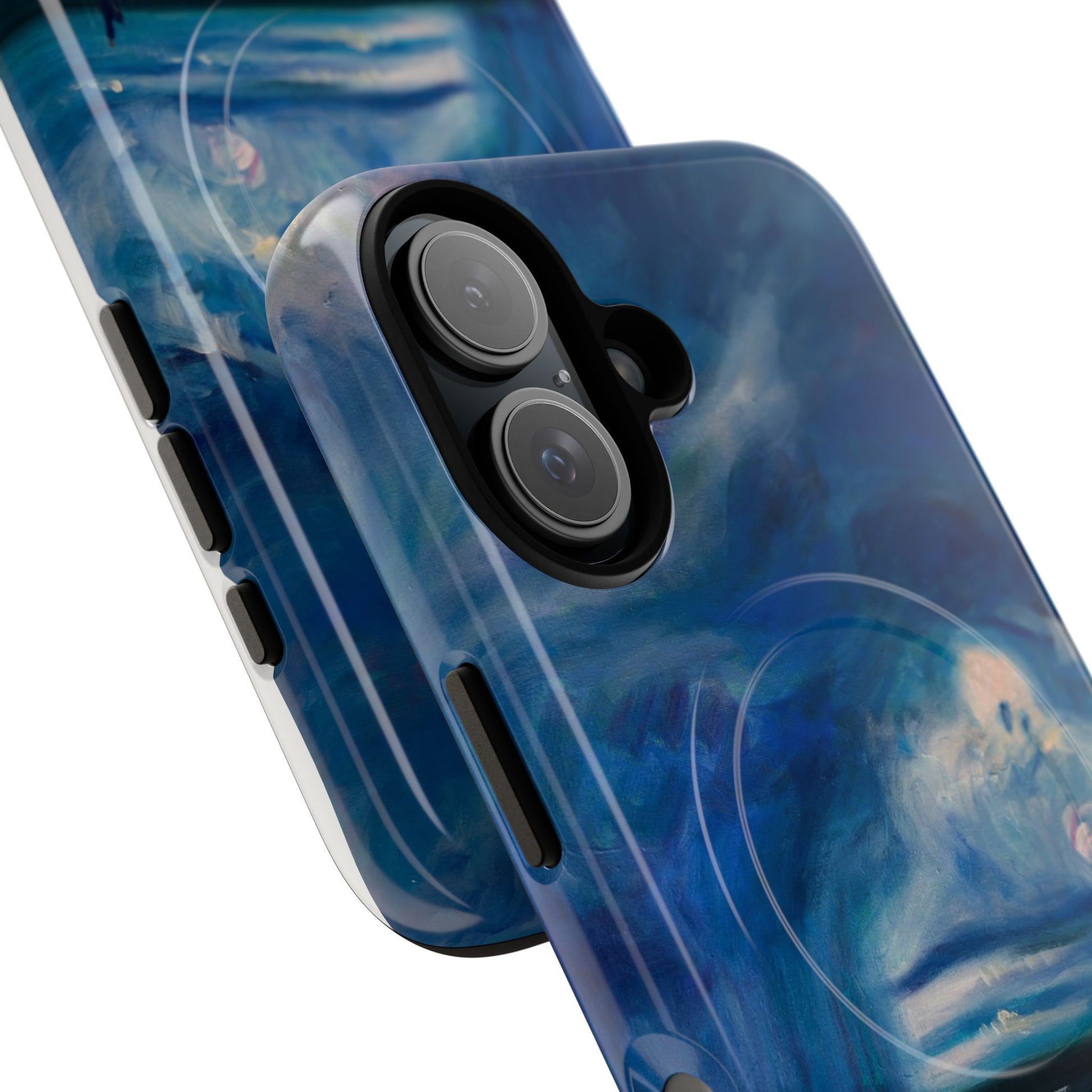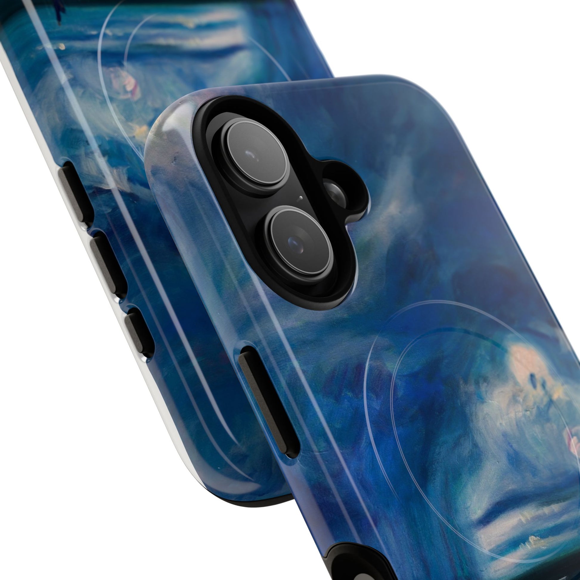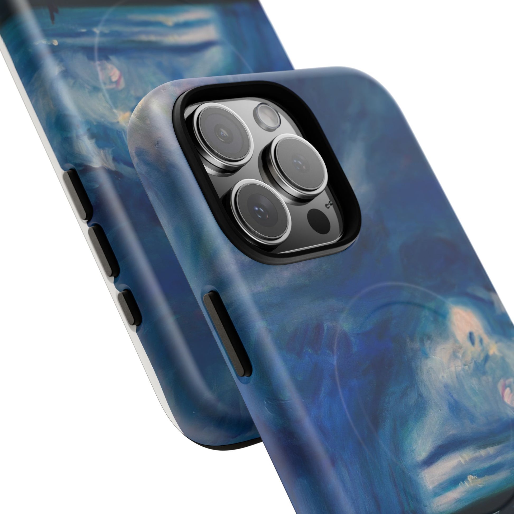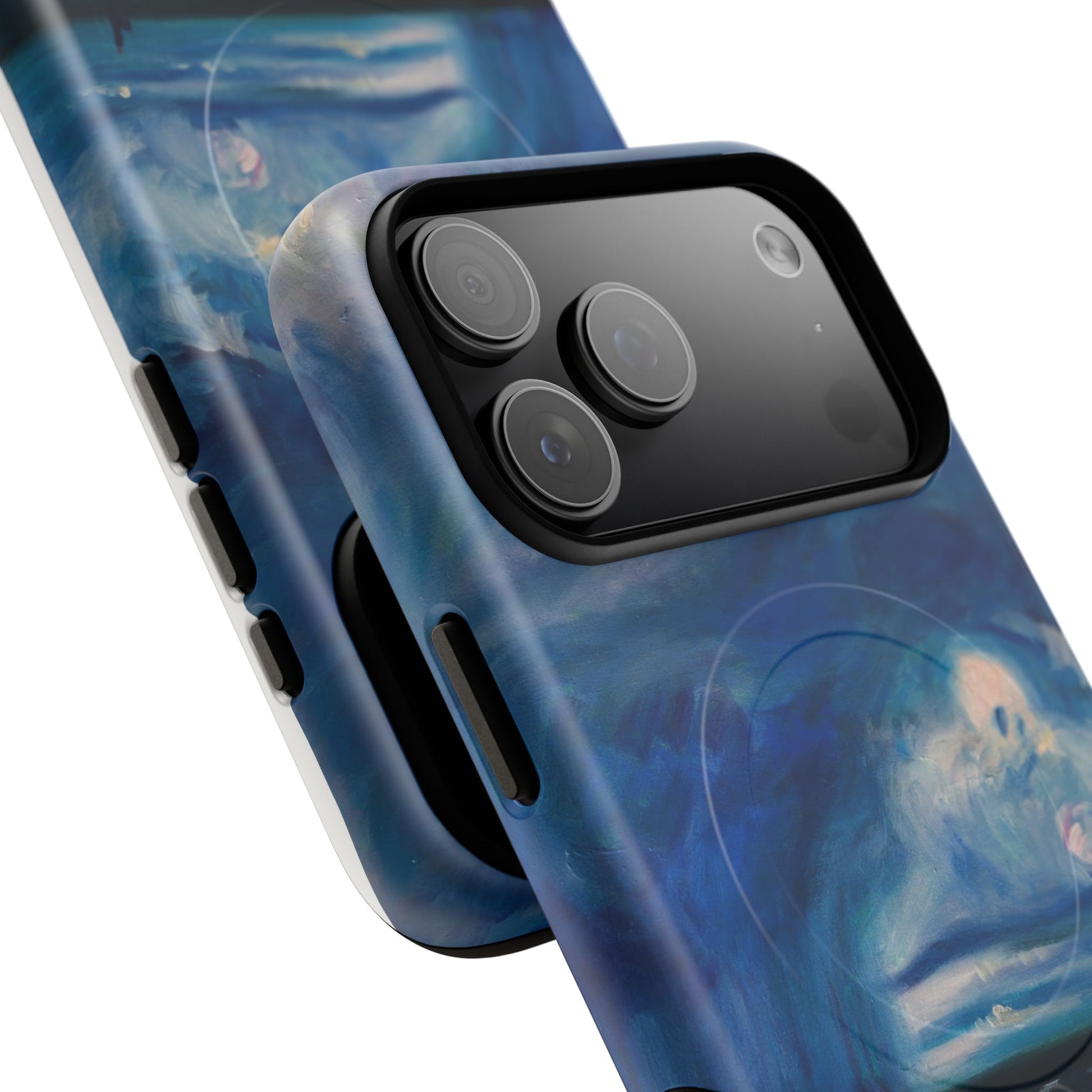 Этот тонкий двухслойный чехол для телефона окутывает ваш iPhone атмосферной картиной на морскую тематику — глубокое темно-синее небо, одинокая фигура на обдуваемых ветром дюнах и далекий горизонт, создающий ощущение уединенного момента у моря. Глянцевая или матовая поверхность сохраняет яркость изображения, а подкладка из ТПУ смягчает удары, в то время как поликарбонатный корпус устойчив к ежедневному износу. Благодаря магнитному модулю, совместимому с MagSafe, и точным вырезам, он сочетает в себе повседневную функциональность со спокойным, созерцательным стилем. Носите с собой небольшой пейзаж, который успокоит ваш день и напомнит о соленом воздухе, вечернем свете и терпении бескрайних просторов.